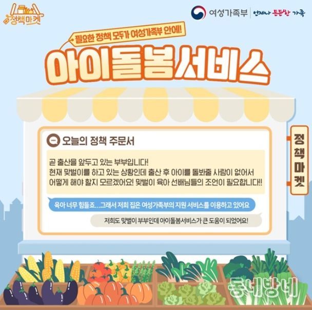 동네방네 김형규 기자 | [오늘의 정책 주문서] 곧 출산을 앞두고 있는 부부입니다. 현재 맞벌이를 하고 있는 상황인데 출산 후 아이를 돌봐줄 사람이 없어서 어떻게 해야 할지 모르겠어요! 맞벌이 육아 선배님들의 조언이 필요합니다.