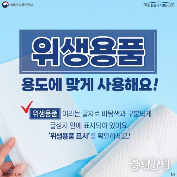 동네방네 김형규 기자 | 특별한 위생관리가 필요한 위생용품은 여러 다른 품목과 사용이나 쓰임이 유사해 잘못된 사용을 하는 경우가 종종 있습니다. 안전하고 건강한 생활을 위해 위생용품은 용도에 맞게 사용해 주세요.