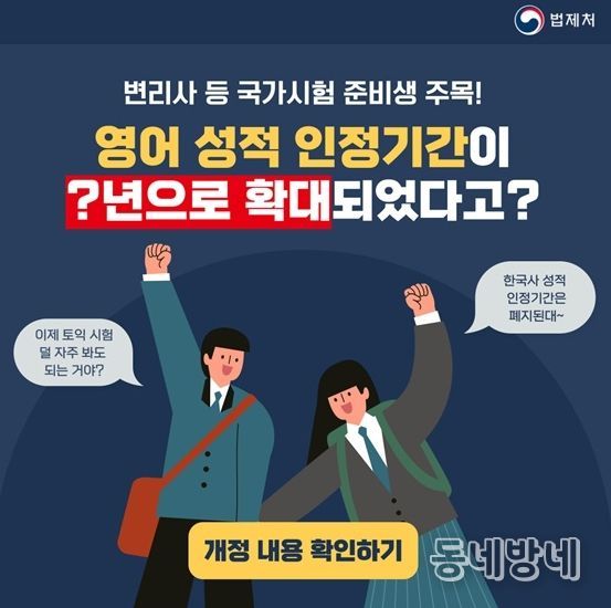 국가자격시험 응시를 위한 영어 성적 인정 기간 : 2~3년 → 5년