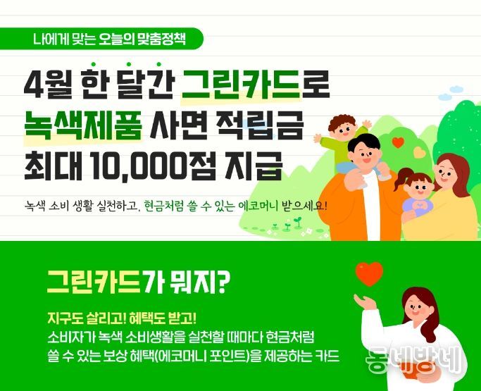 동네방네 김형규 기자 | “녹색 소비 생활 실천하고, 현금처럼 쓸 수 있는 에코머니 받으세요!”