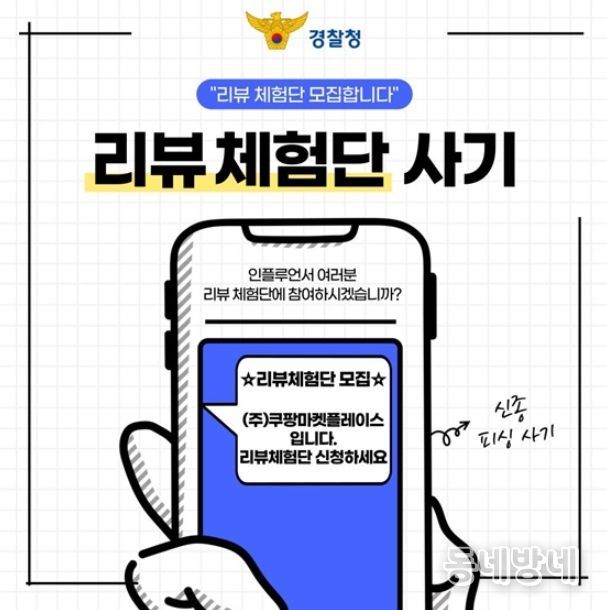 유명 브랜드 ‘쿠팡’, ‘테무’ 등을 사칭하여 리뷰 체험단 모집을 빙자해 문자 또는 전화