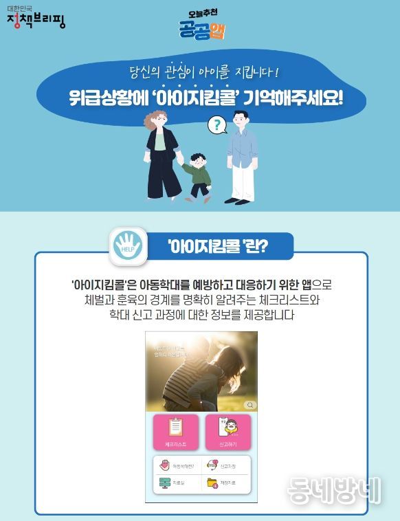 ‘아이지킴콜’은 아동학대를 예방하고 대응하기 위한 앱으로 체벌과 훈육의 경계를 명확히 알려주는 체크리스트와 학대 신고 과정에 대한 정보를 제공합니다