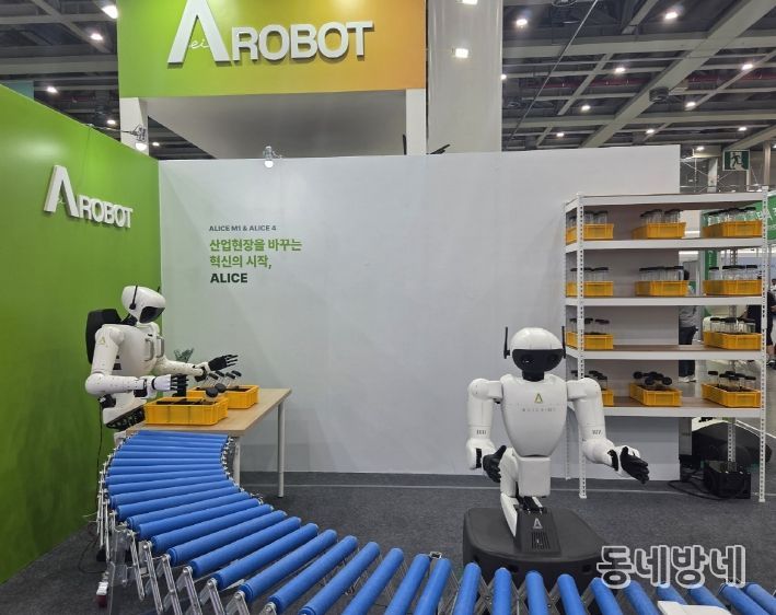 특히, K-휴머노이드 대표주자인 에이로봇의 ‘앨리스MI’ 모델은 휴머노이드와 로봇의 협동 작업을 통해 컨베이어 벨트에 물건을 올리고 이동하는 시연을 국내 최초로 펼치며, 머지않아 미래 제조 현장에 적용 가능한 휴머노이드 기술을 선보였다.