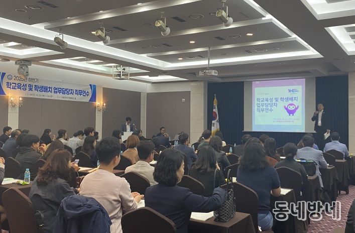동네방네 김형규 기자 | 경북교육청은 23일부터 24일까지 구미시에 있는 호텔금오산에서 도내 22개 교육지원청 행정지원과 과장과 담당자 등 90여 명을 대상으로 ‘2025년 하반기 학교육성 및 학생배치 업무담당자 직무연수’를 개최했다고 밝혔다.
