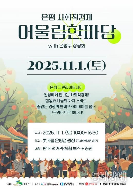 동네방네 김형규 기자 | 서울 은평구는 ‘2025 사회적경제 어울림한마당’을 내달 1일 오전 10시부터 오후 4시 30분까지 롯데몰 은평점 광장에서 개최한다고 밝혔다.