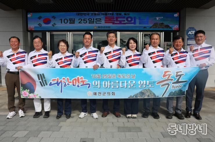 동네방네 김형규 기자 | 예천군의회는 24일, 독도의 날을 맞아 군의회 전정에서 의원과 의회사무과 직원이 참가한 가운데 독도사랑 캠페인을 가졌다.