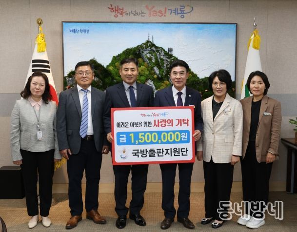 동네방네 김형규 기자 | 계룡시는 지난 24일 국방출판지원단(단장 신기진)으로부터 현금 150만 원을 기탁받았다고 밝혔다.