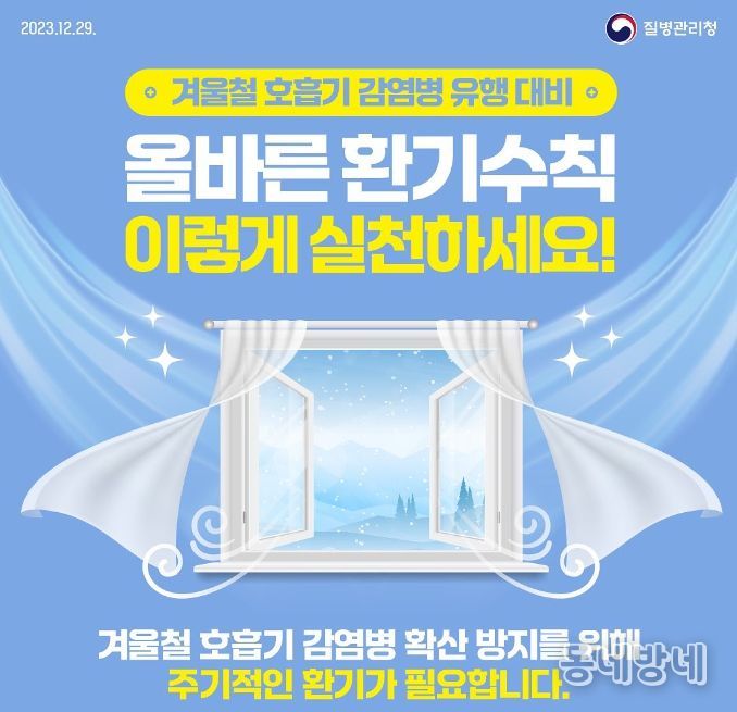 동네방네 김형규 기자 | 겨울철 호흡기 감염병 확산 방지를 위해 주기적인 환기가 필요합니다.