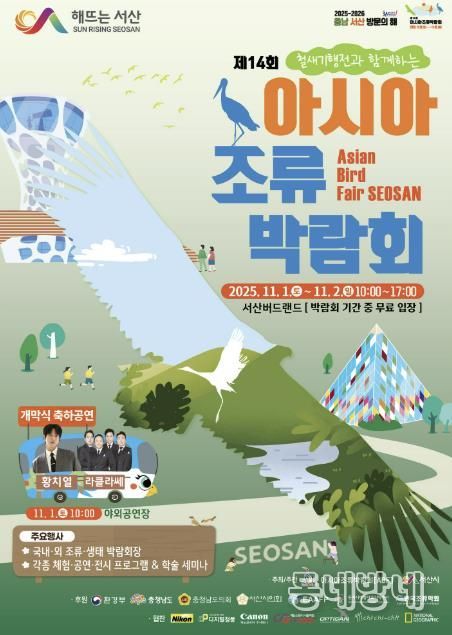 동네방네 김형규 기자 | 충남 서산시는 서산버드랜드에서 오는 11월 1일부터 2일까지 ‘한국의 둥지 천수만, 세계의 둥지를 서산에 틀다’를 주제로 제14회 아시아 조류박람회를 개최한다고 밝혔다.