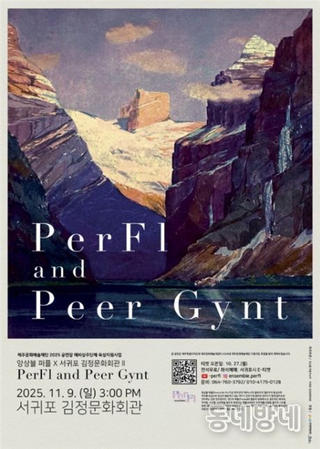 동네방네 김형규 기자 | 서귀포시는 2025년 공연장 상주단체 육성지원사업의 일환으로, 11월 9일 오후 3시 김정문화회관 공연장에서 앙상블 퍼플의 플루트·타악기 앙상블 공연 '페르귄트'를 개최한다.