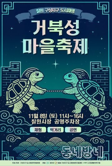 동네방네 김형규 기자 | 함안군은 ‘제2회 칠원 구성지구 도시재생 거북성 마을축제’가 11월 8일 오전 11시부터 오후 4시까지 칠원읍 구성리 칠원시장 공영주차장 일원(구성리 728-100)에서 열린다고 밝혔다.