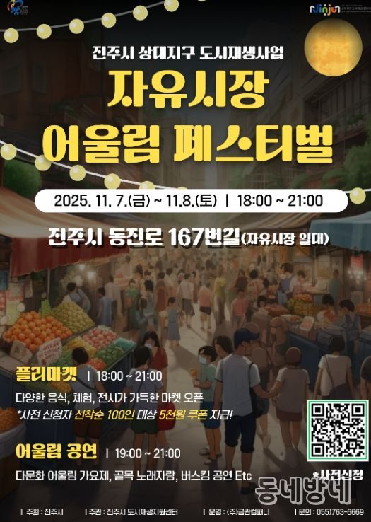 동네방네 김형규 기자 | 진주시는 7일과 8일 이틀간 상대지구 도시재생사업의 일환으로 추진되는 ‘자유시장 어울림 페스티벌'을 개최한다고 밝혔다.