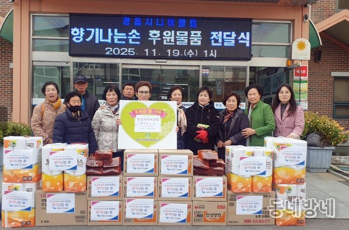정읍시니어클럽 환경도우미 동아리 ‘향기나는 손’(대표 안순옥)은 지난 19일 정읍시장애인종합복지관을 찾아 회원 231명이 정성껏 마련한 80만원 상당의 생필품을 기탁했다.