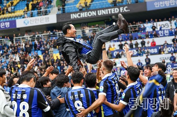 이날 청주FC와의 경기를 끝으로 인천유나이티드는 2025 K리그2 우승컵을 거머쥐며, K리그1 복귀를 이뤄냈다.