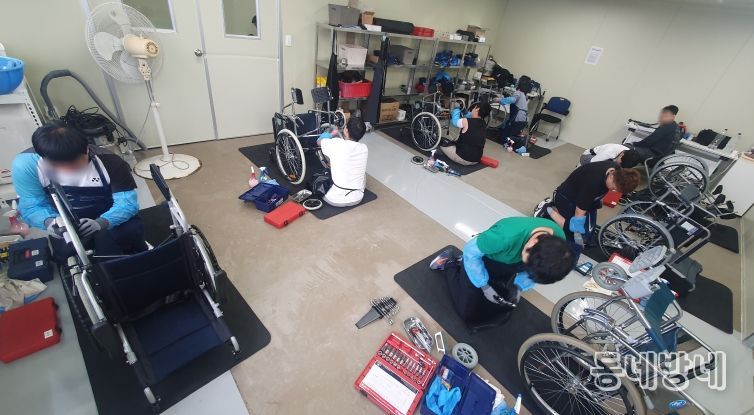 현장 기반 실습과 체계적 기술 교육을 통해 보조기기 사후관리 업무 수행 역량을 높이고, 합격생들은 장애인일자리 사업에 참여해 관내 병원·요양시설, 가정 등에서 휠체어 무료 세척·살균 서비스를 제공하며 지역사회 보조기기 위생 관리뿐 아니라 취약시설 내 감염병 예방 환경 조성에도 기여하고 있다.
