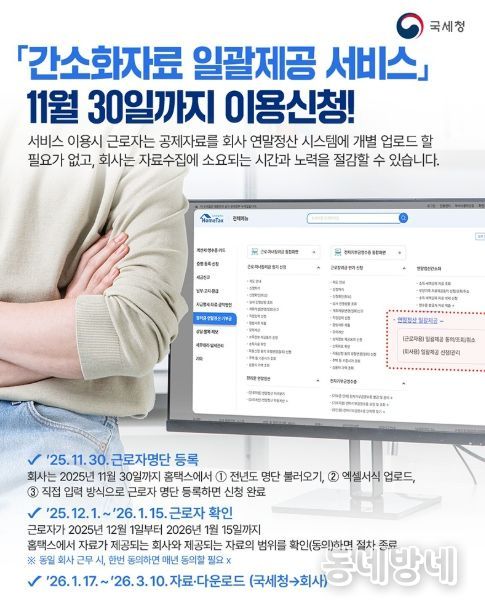 동네방네 김형규 기자 | 「간소화자료 일괄제공 서비스」 11월 30일까지 이용신청!