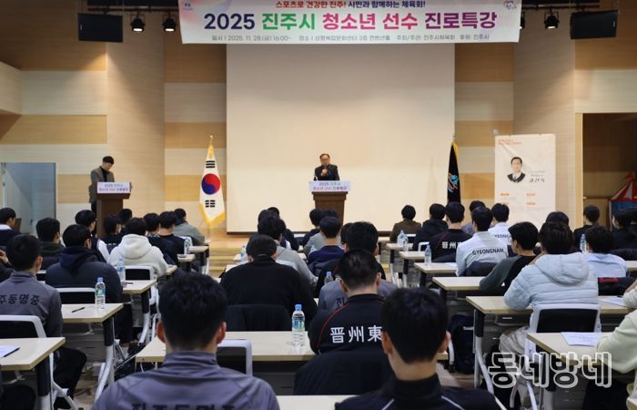 동네방네 김형규 기자 | 진주시체육회는 지난 11월 28일 상평복합문화센터에서 진주시 청소년 스포츠선수의 진로 탐색을 지원하기 위한 『2025 진주시 청소년 선수 진로 특강』을 개최했다.
