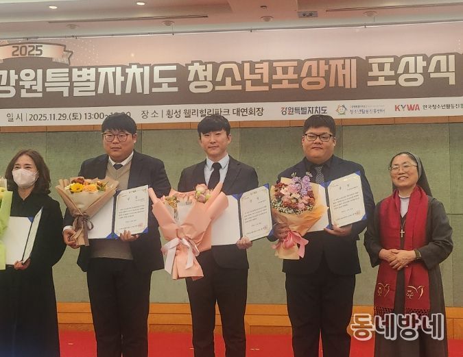 동네방네 김형규 기자 | 정선군이 설립하고 한국청소년연맹이 수탁 운영하는 신동 다함께돌봄센터는 2025년 11월 29일 횡성 웰리힐리파크에서 열린‘강원특별자치도 청소년포상제 포상식’에서 2025년 첫걸음 청소년자기도전포상제 우수활동기관으로 선정돼 한국청소년활동진흥원 이사장상을 수상하고 소속 청소년 23명이 인증서를 수여 받았다.
