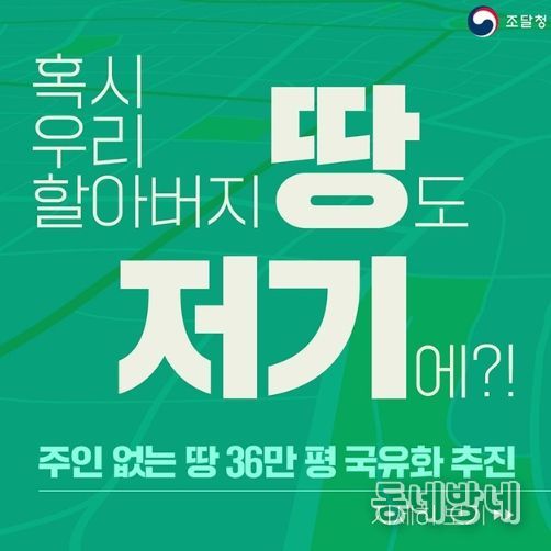 동네방네 김형규 기자 | 조달청은 주인 없는 땅 952필지(36만 3,000평)의 국유화를 추진합니다.