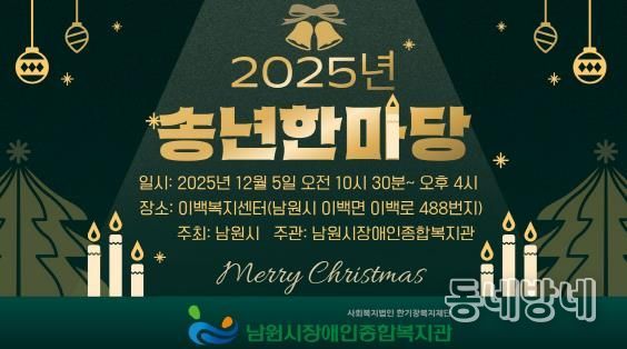 동네방네 김형규 기자 | 남원시장애인종합복지관이 오는 12월 5일 오전 10시 30분, 이백복지센터(이백로 488)에서 '2025년 남원시장애인종합복지관 송년한마당'을 개최한다.