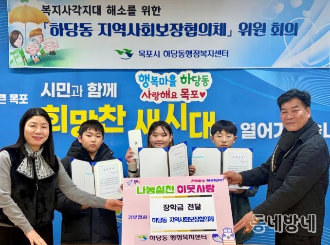 동네방네 김형규 기자 | 하당동 지역사회보장협의체(위원장 서종일)는 지난 4일 하당동 관내 학생 3명을 장학생으로 선정하고 장학증서와 장학금을 전달했다.