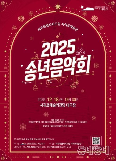 동네방네 김형규 기자 | 서귀포시는 12월 18일 19시 30분 서귀포예술의전당 대극장에서 제주특별자치도립 서귀포예술단의 '2025 송년음악회'를 개최한다.