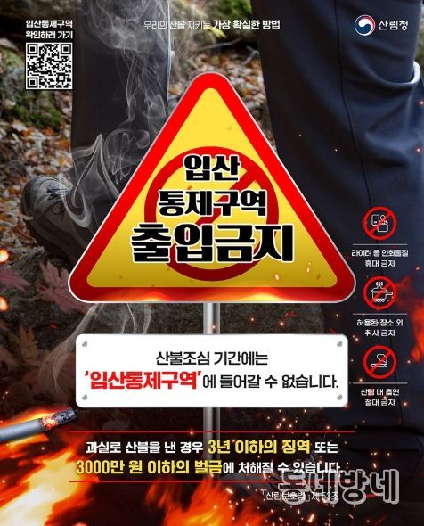 산불조심기간에는 '입산통제구역'에 들어갈 수 없습니다.