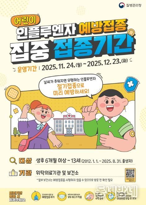 안동시 관계자는 “감염병 확산을 막기 위해서는 시민 한 분 한 분의 예방수칙 준수가 무엇보다 중요하다”며, “건강한 겨울나기를 위해 가족 모두가 예방접종에 적극적인 동참을 부탁드린다”고 전했다.