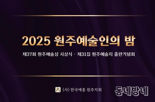 동네방네 김형규 기자 | 지역 문화예술 발전에 기여한 예술인들의 공로를 기리고, 원주의 예술적 성과를 공유하기 위한 ‘제37회 원주예술상 시상식 및 제31집 원주예술지 출판기념회’가 오는 16일 오후 5시, 빌라드아모르에서 개최된다.