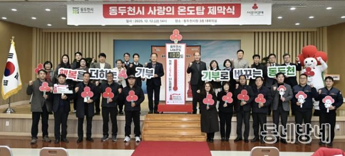 동네방네 김형규 기자 | 동두천시는 지난 12월 12일 동두천시청 대회의실에서 동두천시장을 비롯해 동두천시의회 의장 및 의원, 경기북부 사회복지공동모금회 관계자, 기업·단체·시민 등 40여 명이 참석한 가운데 ‘사랑의 온도탑’ 제막식을 개최했다.