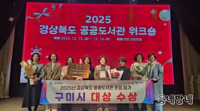 동네방네 김형규 기자 | 구미시는 지난 15일 열린 ‘2025 경상북도 공공도서관 워크숍’ 내 ‘공공도서관 운영평가 시상식’에서 도내 43개 공공도서관 중 전체 1위를 차지했다. 그룹별 평가에서도 구미시립중앙도서관이 A그룹 대상을, 구미도시공사 소속 봉곡도서관이 B그룹 우수상을 받으며 2년 연속 두 개관이 동시에 수상하는 성과를 거두었다.