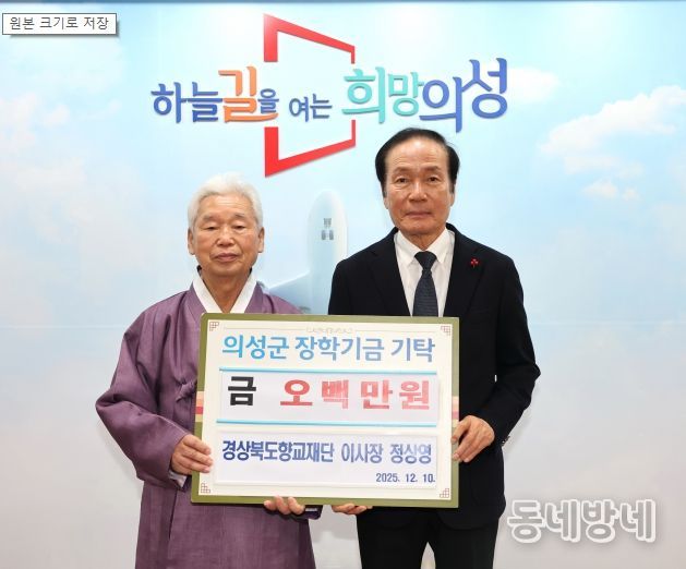 김주수 의성군수는 “고향에 대한 깊은 애정과 뜻깊은 나눔을 실천해 주신 정상영 이사장님께 진심으로 감사드린다”며 “기탁해 주신 장학금은 지역 학생들이 꿈을 키우고 훌륭한 미래의 주인공으로 성장할 수 있도록 학업 지원과 인재 육성을 위해 소중히 사용하겠다”고 말했다.