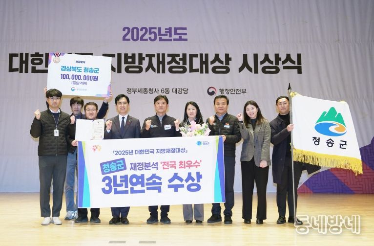 행정안전부는 전국 243개 지방자치단체를 대상으로 2025년 지방자치단체 재정분석을 실시한 결과, 청송군이 재정 건전성과 효율성을 고루 인정받아 ‘최우수 자치단체’로 선정됐다고 밝혔다. 이에 따라 청송군은 행정안전부장관 표창과 함께 특별교부세 인센티브 1억 원을 지원받게 됐다.