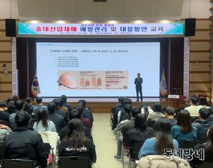 동네방네 김형규 기자 | 포항시는 중대산업재해 예방과 안전관리 책임 강화를 위해 17일 시청 대회의실에서 공무원을 대상으로 중대재해 예방 교육을 실시했다.