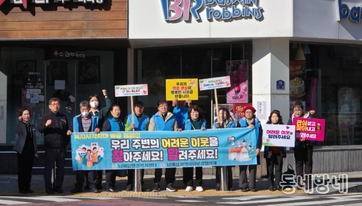 동네방네 김형규 기자 | 남해읍 지역사회보장협의체(공동위원장: 이창융, 박근배)는 지난 18일 남해읍행정복지센터 회의실에서 2025년 12월 정기회의를 개최한 후 읍 사거리에서 복지사각지대 발굴 캠페인을 개최했다.