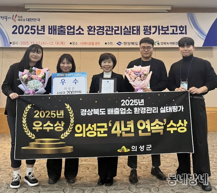 동네방네 김형규 기자 | 의성군은 지난 12월 17일 열린 ‘2025년 경상북도 배출업소 환경관리 실태평가’에서 2그룹 1위를 차지하며 도 전체 우수상을 수상했다고 밝혔다.