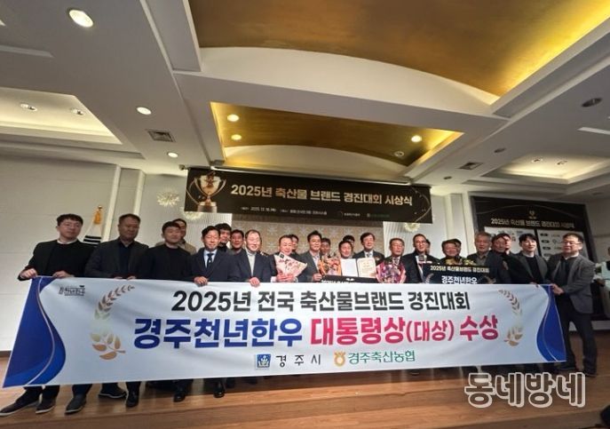 동네방네 김형규 기자 | 경주지역 대표 한우 브랜드인 ‘경주천년한우’가 농림축산식품부가 주최하고 농협경제지주가 주관한 2025년 축산물 브랜드 경진대회에서 최고의 영예인 ‘대통령상(대상)’을 수상했다.