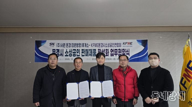 문경시 소상공인연합회와 ㈜서원 문경(창원방향)휴게소(이하 양 기관)는 2025년 12월 17일, 문경지역 소상공인 제품의 판로 확대 및 지역경제 활성화를 위한 업무 제휴 협약(MOU)을 체결했다.