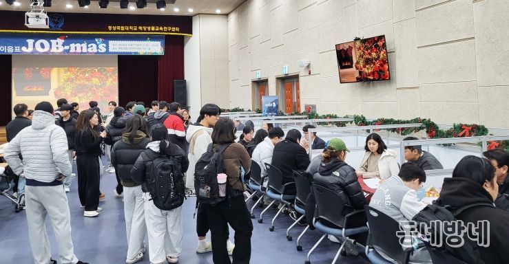 동네방네 김형규 기자 | 경상국립대학교 해양과학대학 해양수산미래교육원(원장 안영수)은 12월 17일 해양생물교육연구센터 1917홀에서 ‘라이즈(RISE) 연구특화 워케이션’ 해양과학대학 직무박람회 ‘이음표 잡마스(JOB-mas)’를 개최했다.