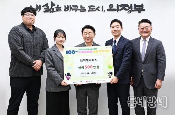 동네방네 김형규 기자 | 의정부시는 12월 18일 관내 기업 ㈜지에프에스가 지역사회 나눔 실천의 일환으로 성금 500만 원을 기탁했다고 밝혔다.