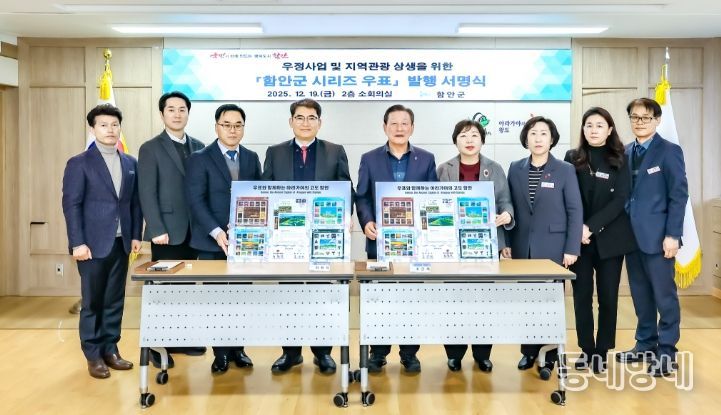 동네방네 김형규 기자 | 함안군과 부산지방우정청이 지난 19일 군청 2층 회의실에서 ‘함안군 시리즈 우표’ 발행기념 서명식을 개최했다.