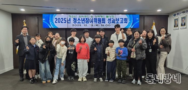 동네방네 김형규 기자 | 부산 영도구는 지난 12월 18일 영도구청에서 청소년과 보호자 20여 명이 참석한 가운데 ‘제13기 영도구 청소년참여위원회 성과보고회’를 개최하고, 위원회의 한 해 활동을 공식적으로 마무리했다.