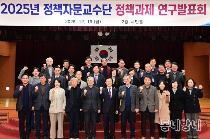 동네방네 김형규 기자 | 진주시는 19일 진주시청 시민홀에서 조규일 시장을 비롯해 정책자문교수단, 공무원 등 120여 명이 참석한 가운데 ‘2025년도 정책자문교수단 정책과제 연구발표회’를 개최했다.