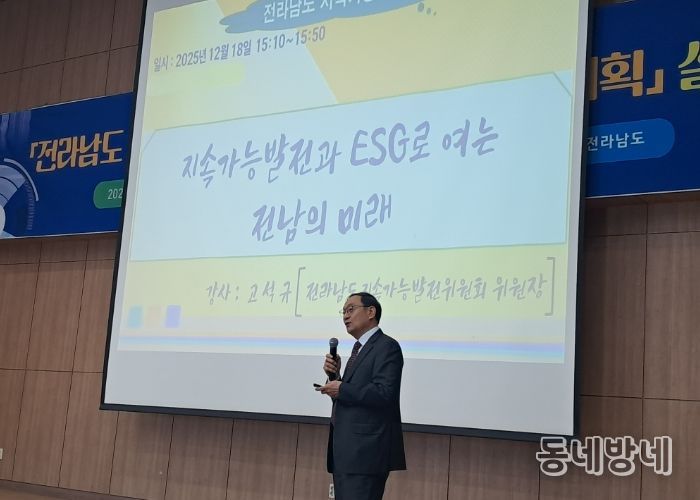 첫번째 강연자로 나선 고석규 전남도 지속가능발전위원장은 ‘지속가능발전과 ESG로 여는 전남의 미래’를 주제로 지속가능발전의 의미와 함께 전남도가 앞으로 나아가야 할 방향을 제시했다. 이어‘전라남도 지속가능발전 기본전략 및 추진계획’의 주요 내용과 추진체계에 대한 구체적 이해를 높이기 위한 전략 수립 배경, 향후 5년과 20년을 내다보는 중·장기 추진 과제 등을 소개했다.