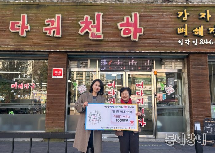 동네방네 김형규 기자 | 남양주시는 지난 18일 별내면 소재 ‘뼈다귀천하’가 지역 내 취약계층 지원을 위해 후원금 100만 원을 별내면 지역사회보장협의체에 기탁했다고 밝혔다.