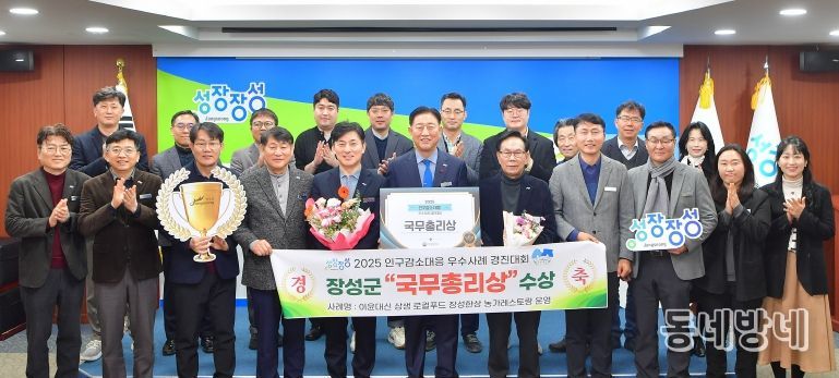 동네방네 김형규 기자 | 장성군이 18일 정부세종청사에서 열린 행정안전부 ‘지자체 인구감소대응 우수사례 경진대회’에서 ‘장성한상’ 운영 사례를 발표해 국무총리상을 수상했다.