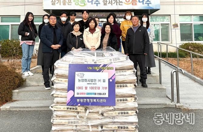 동네방네 김형규 기자 | 전라남도 나주시 봉황면 소재 농업회사법인 ㈜뜰(대표 임금서)은 19일 봉황면 행정복지센터를 방문해 10kg 쌀 100포대(총 1000kg)를 기부하며 지역사회 나눔 실천에 앞장섰다.