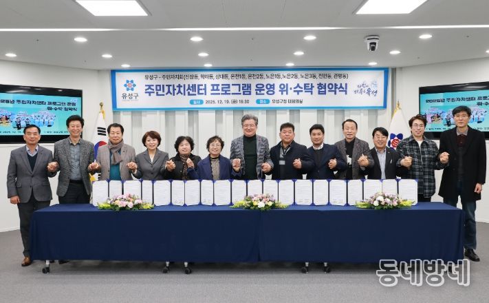 동네방네 김형규 기자 | 대전 유성구는 19일 동 주민자치회와 주민자치센터 프로그램 운영을 위한 ‘민간 위탁 협약’을 체결했다.