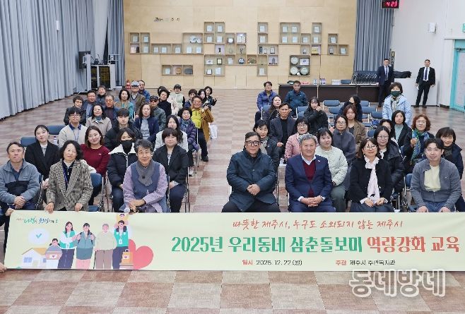 동네방네 김형규 기자 | 김완근 제주시장은 22일 시청 1별관 회의실에서 열린 2025년 ‘우리동네 삼춘돌보미’ 역량강화 교육에 참석해 관계자들을 격려했다.