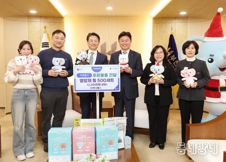 전달식에는 조용익 부천시장과 김원석 ㈜허니웰스 대표를 비롯한 임직원이 참석해 나눔의 의미를 나눴다. 후원 물품은 성장기 아동과 건강관리가 필요한 어르신의 영양 지원을 위해 마련됐으며, 관내 지역아동센터 58개소와 오정노인복지관을 통해 전달될 예정이다.
